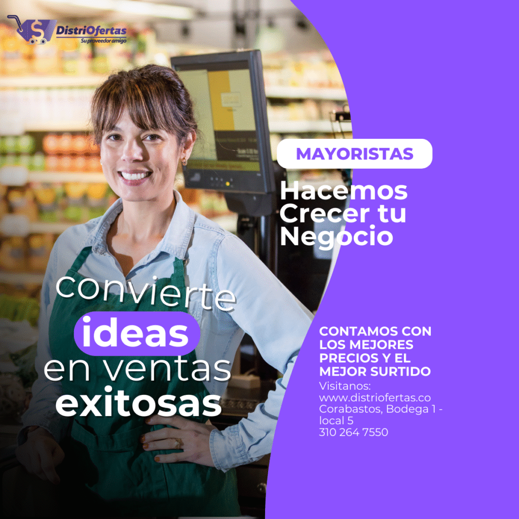 Contamos con un surtido perfecto para tu negocio: supermercados, minimercados, tiendas de barrio y mayoristas. Somos tu mejor aliado ya que contamos con los precios mas bajos del mercado, desde DistriOfertas sabemos lo importante de que tu negocio sea rentable.